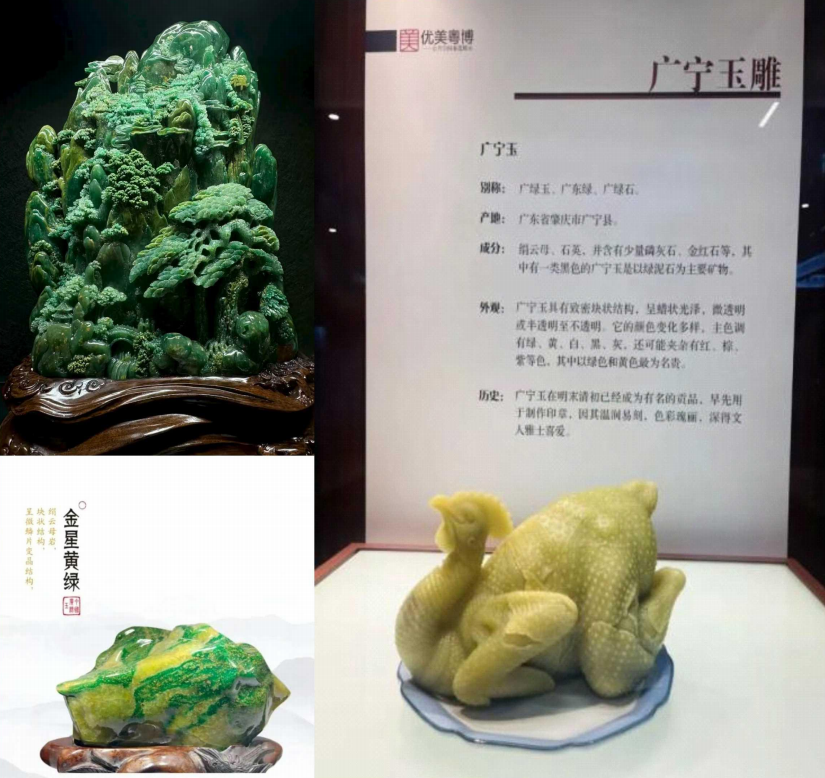 广绿玉又称广东绿、广绿石,是中国五大名石之一,产于洲仔镇清桂村的五指山一带,明末清初,已是有名的贡品,被皇家收藏。广绿玉质感柔和细腻,晶莹剔透,具有“细、洁、润、腻、温、凝”的“六德”。