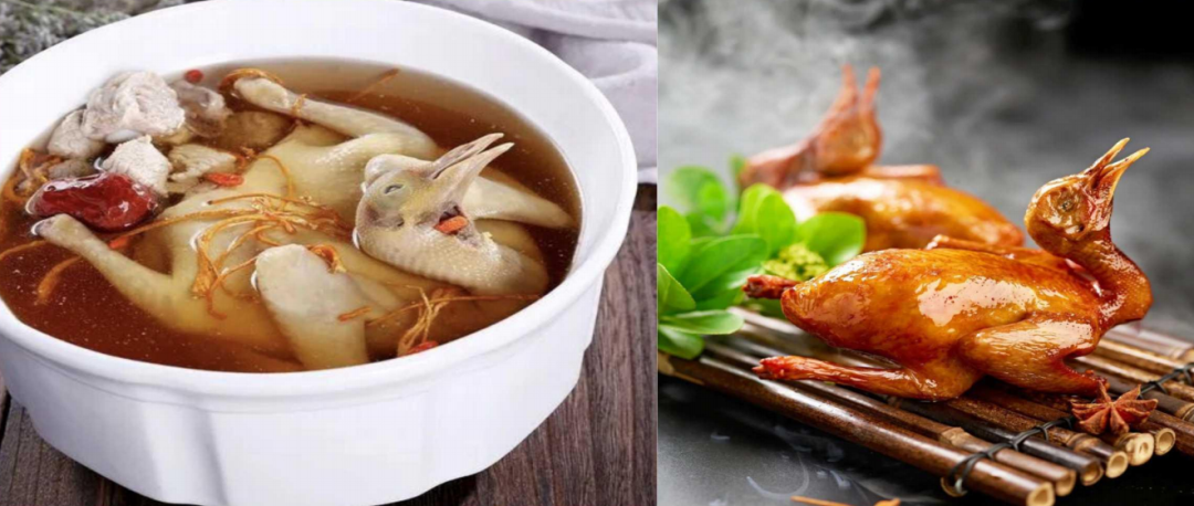 鸽子在民间素有“一鸽胜九鸡”的美称。《食疗本草》上记载鸽子肉:“味咸性平、无毒,滋阴壮阳、补肝肾、益气血。”鸽子肉既可滋阴又可助阳,非常适合老年人、体虚病弱者、手术患者、孕妇及儿童等群体的进补。